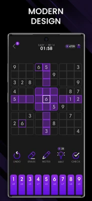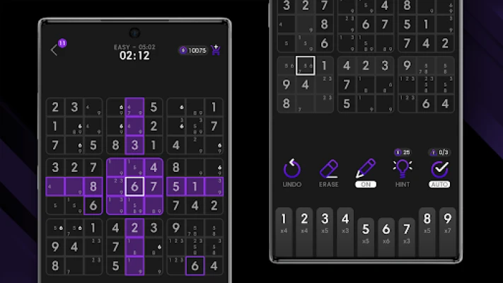 ✔️ Auto remove notes from all columns, rows and blocks once the number is placed and also unlimited undo