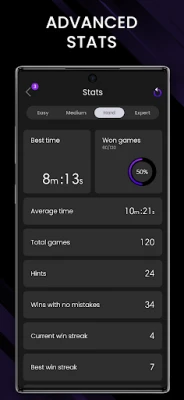✔️ Advanced statistics and analytics to track your progress for every difficulty level of daily Sudoku Puzzles