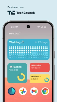Count how many days until significant events with Pretty Progress count-up and countdown widget. A birthday countdown widget, a day tracker for quitting alcohol, or knowing the time left until a deadline – keep the motivation with ALWAYS ON reminders on your Home Screen.