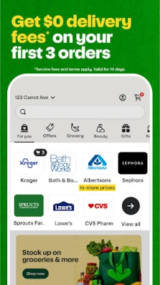 Get food delivery and grocery orders delivered directly to your door in as fast as 30 minutes with our app that helps with your shopping. Let Instacart connect you to your favorite food & drink spots, local grocery store or chain and get your goods in no time. Browse, shop, and eat with convenient grocery delivery in just a few taps! Plus, enjoy $0 delivery fee on your first three grocery orders within 14 days of the first order. Service fees and terms apply!