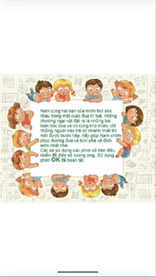 Intellectual Race is a game that challenges players' intelligence, in which Nam and his two friends participate in an intellectual race. The obstacles on the racecourse are tough and challenging math problems, and only those who answer the fastest and most accurately can overcome them. The player's task is to help Nam overcome the obstacles and reach the finish line as quickly as possible. The game uses the number keys on the screen to fill in the corresponding numbers for the question. The player uses the OK key to confirm the answer.