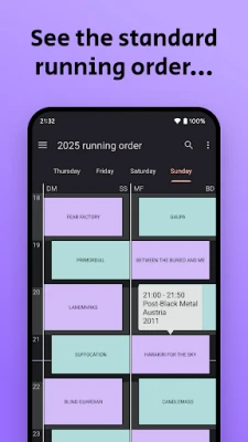 Rate the bands you want to see to get a custom running order, and share those ratings with the friends who'll be with you.