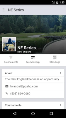 Key Features: • View New England Series tournament info and leaderboards. • Find courses and course info - across the U.S. and Canada. • Read the latest New England Series news. • Season standings and stats.