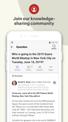 * Ask a question and get helpful answers * Follow topics and browse quality content * Learn from credible people with first-hand knowledge * Answer questions and share your knowledge with the world