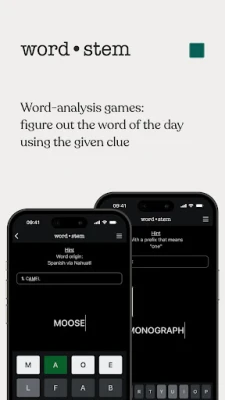 ★ word • stem: Guess the word of the day with the aid of a given clue such as a prefix, suffix, or the origin of the word.