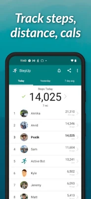 StepUp gives you two virtual friends – Active Bot and Chill Bot – who walk 10K and 2K steps respectively. If you'd prefer to keep your fitness journey private, you can compete against them while still enjoying the benefits of friendly competition via a leaderboard and pacer.