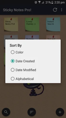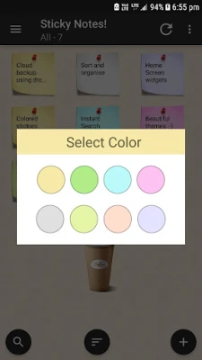 Searching through your stickies is faster than ever using the search button. You can even search your stickies directly from your Home screen by including the search results in the Google Search widget.