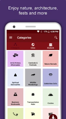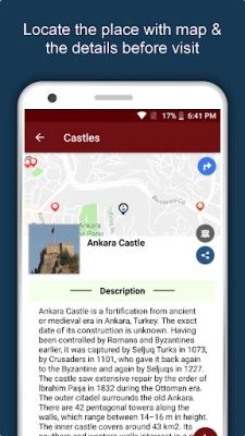 Apart from this, Turkey Travel & Explore guides you Why, When and How to visit various places in Turkey with precise location on the detailed Map. There are three ways to explore this app - Category view, City view and EduBank favorite places view. Pin your destinations and get the routes on the Map. Not only this, you can see exactly how the places look like with Street View integrated in this app. The app also has a feature to Rate and write Review/Experience regarding entity(s) through Login. Your Travel experience and rating will help the user community.